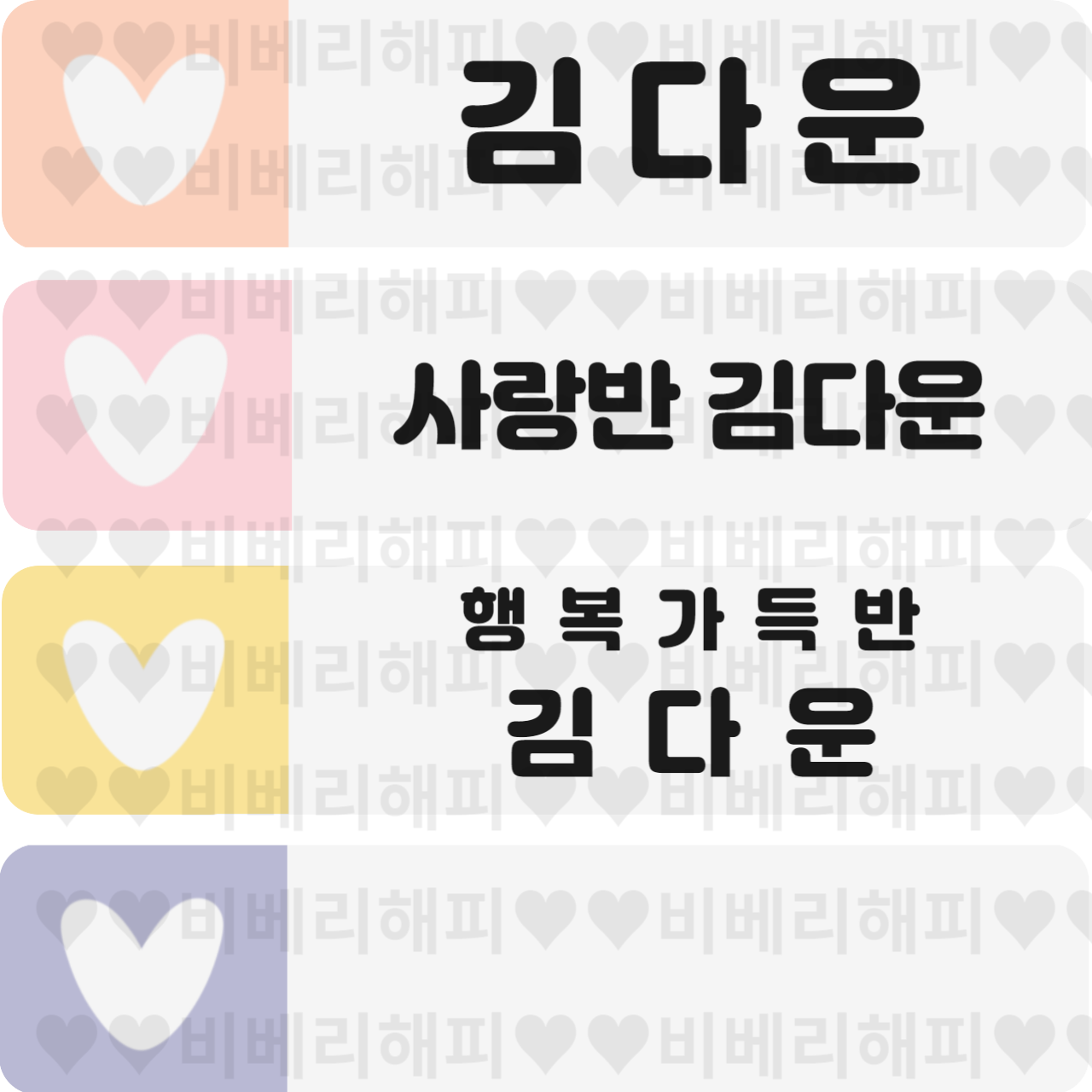 오늘은 어린이집 유치원 사물함 파일 이름표 무료 도안 나눔(하트 가로 파스텔톤)을 하려고 합니다!