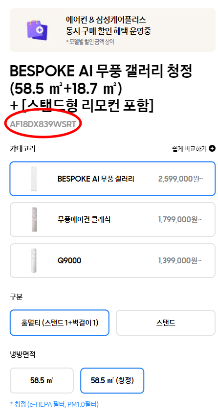 - 모델명 접두사 : 삼성 에어컨의 모델명에서 'AF'로 시작하는 경우, 인버터 모델일 가능성이 높습니다. 'A'는 에어컨을 의미하고, 'F'는 프리미엄 모델을 나타냅니다.