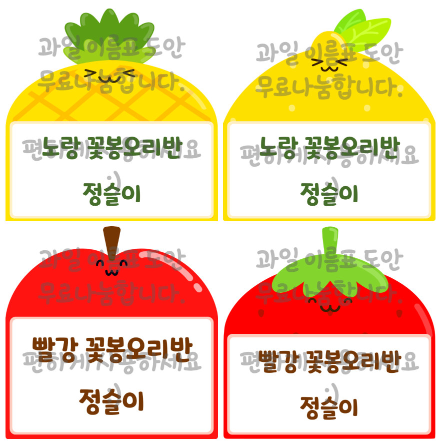 이번 과일 라벨 이름표 도안 색은 노랑과 빨강 두 가지로 통일해서 준비했는데 어떤가요?!